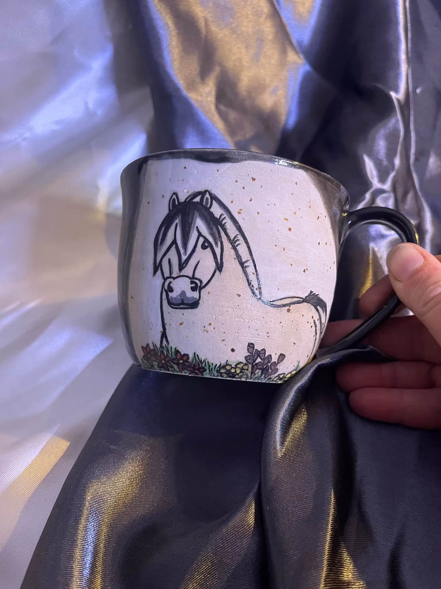 Svart mugg med fjording 350 kr En drejad svartglaserad mugg med handmålat motiv med fjording och blommor. Rymmer ca 350ml. Tål diskmaskin och mikro. I lager. Lägg i korgen Dela Lagersaldo: 1 Artikelnummer: 408 Information En drejad svartglaserad mugg med handmålat motiv med fjording och blommor. Rymmer ca 350ml. Tål diskmaskin och mikro.